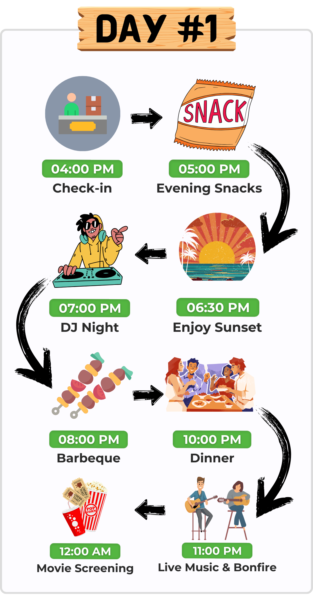 Settle down for the StarGazing & Movie screening. End the day nearby a beach under the open sky & Enjoy sleeping in Tent.
